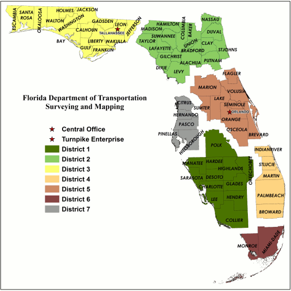 | Mailing Address: Florida Dept. of Transportation Surveying & Mapping Office 605 Suwannee St MS-5L Tallahassee, FL 32399-0450 | Street Address: Florida Dept. of Transportation Surveying & Mapping Office 605 Suwannee Street Tallahassee, FL 32301 (850) 414-4111 | Link for a direction map to our office |
